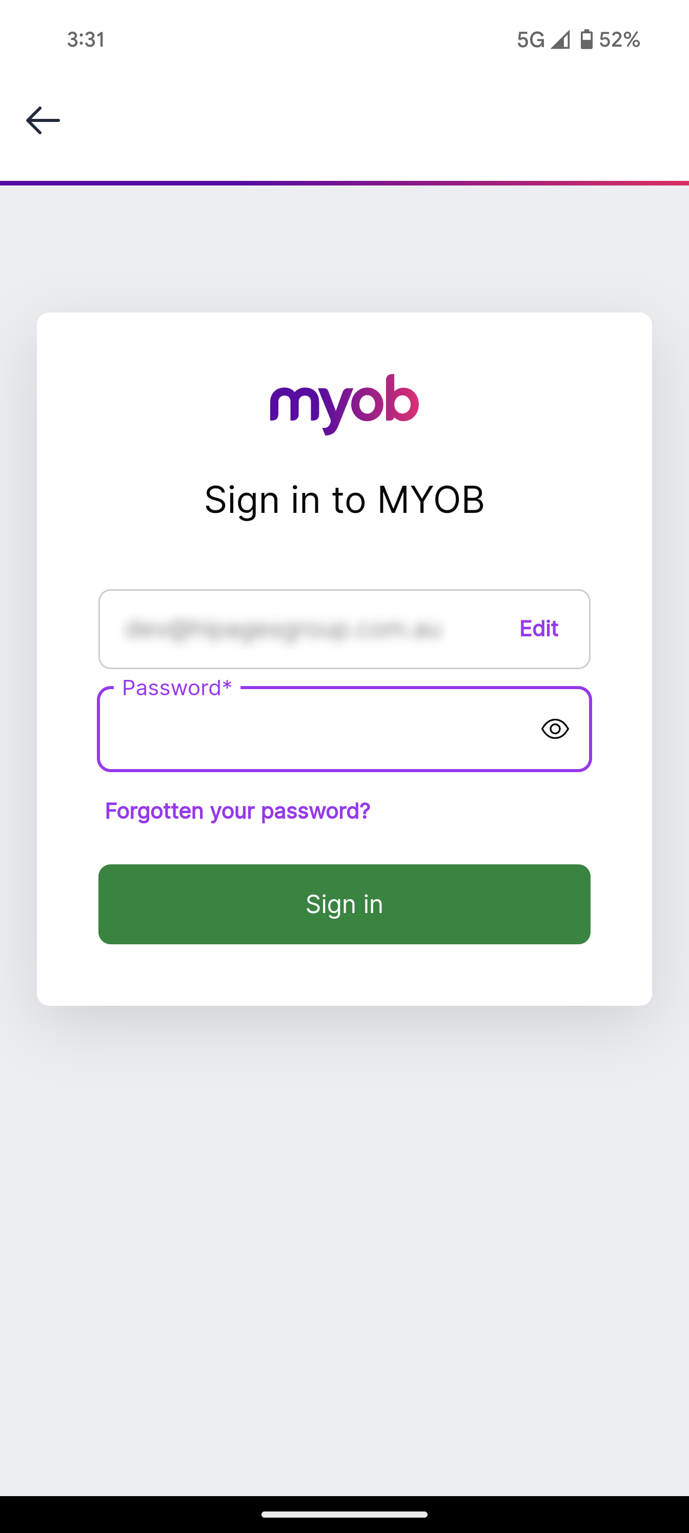 Enter the password of your MYOB account and select Sign in.
