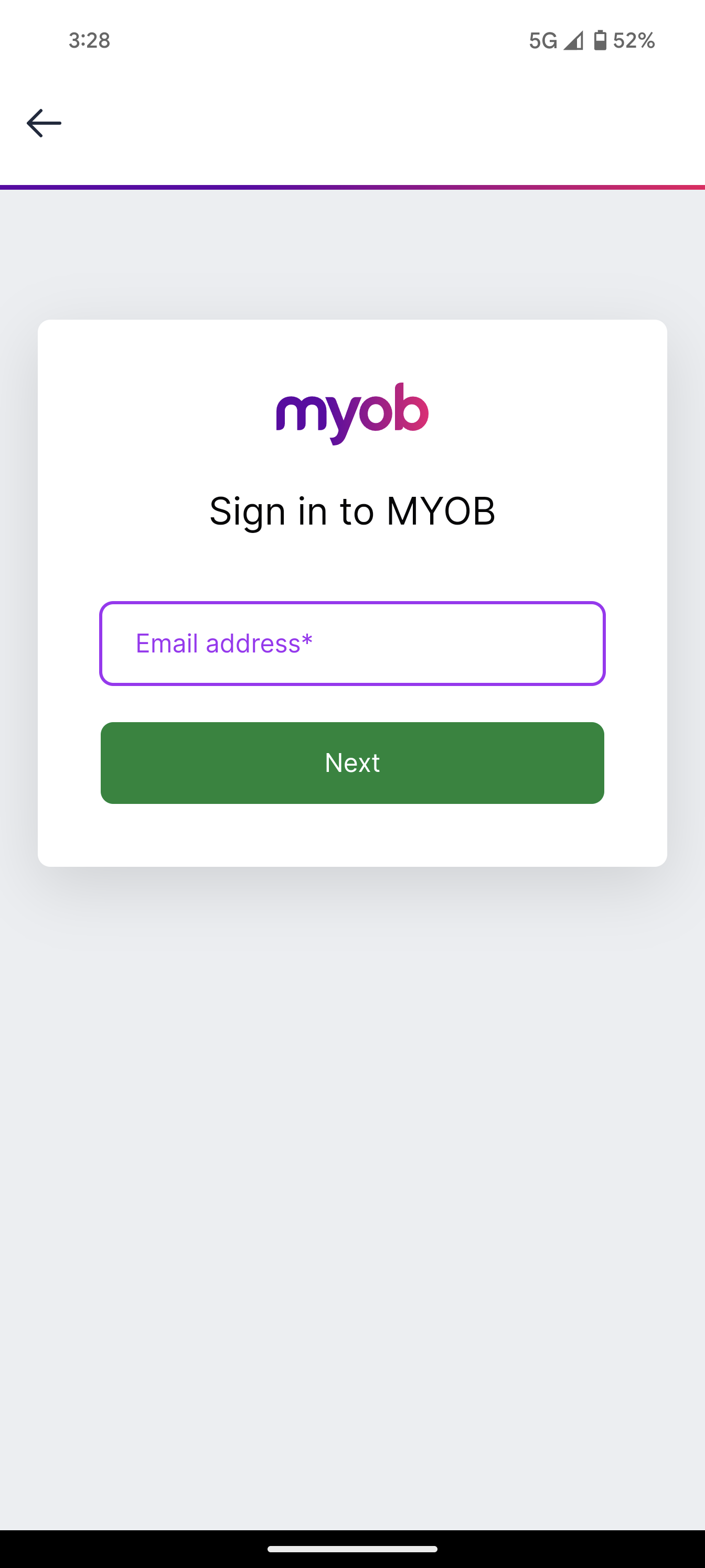 Enter the email address of your MYOB account and select Next.
