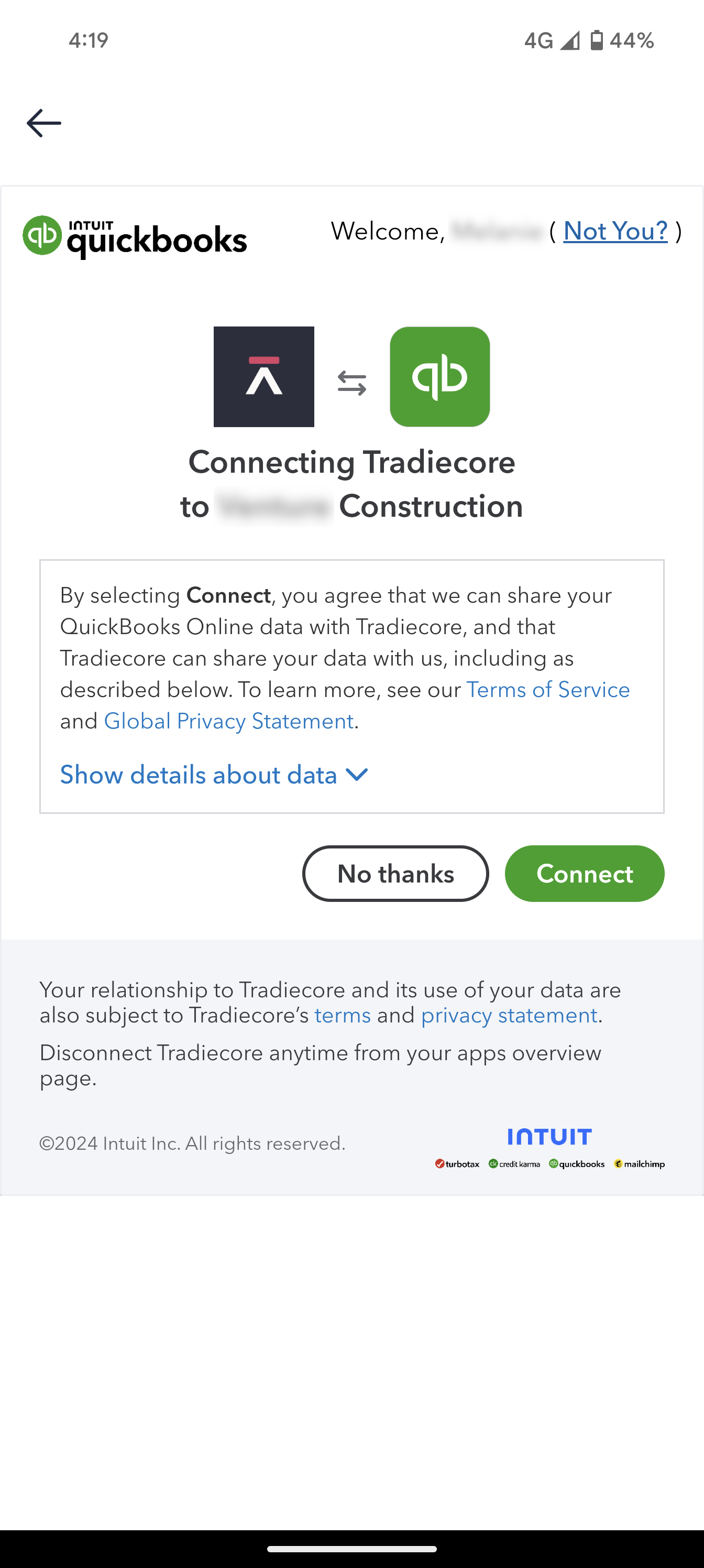 Connecting to Quickbooks
