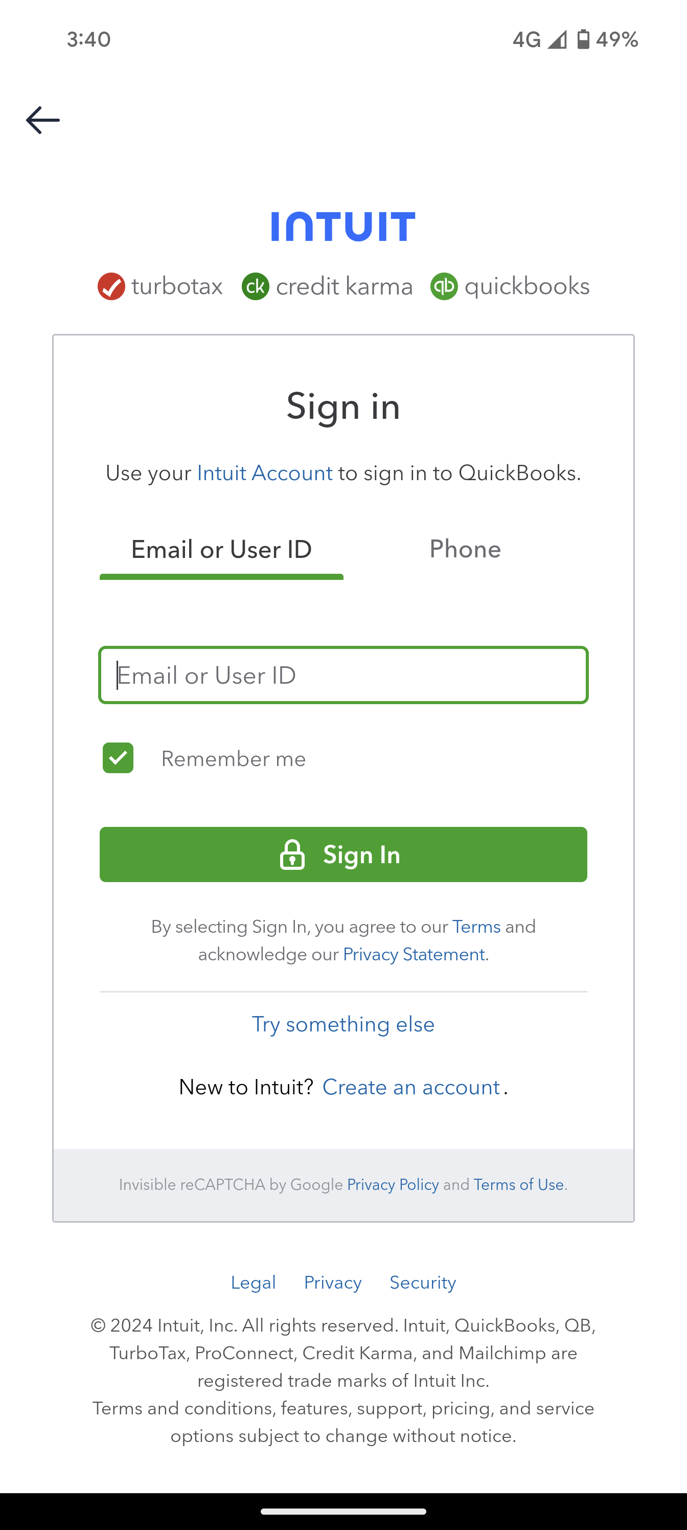 This will open the Quickbooks login screen.