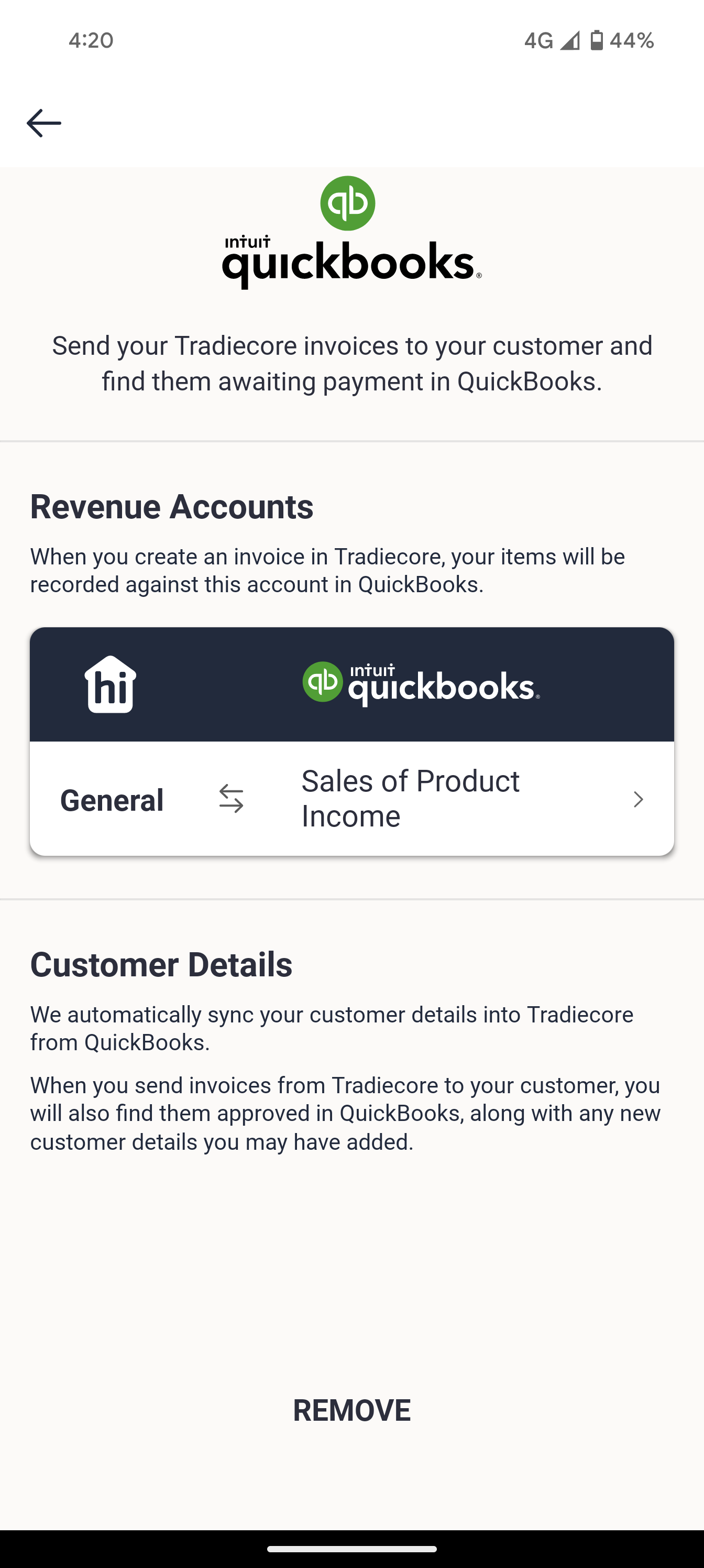 Follow the steps listed here to set up Quickbooks integration with hipages tradiecore. hipages tradiecore supports full synchronisation with Quickbooks . Any changes you make to an invoice or customer in Quickbooks are automatically updated in hipages tradiecore and any changes made in hipages tradiecore will be reflected in Quickbooks .