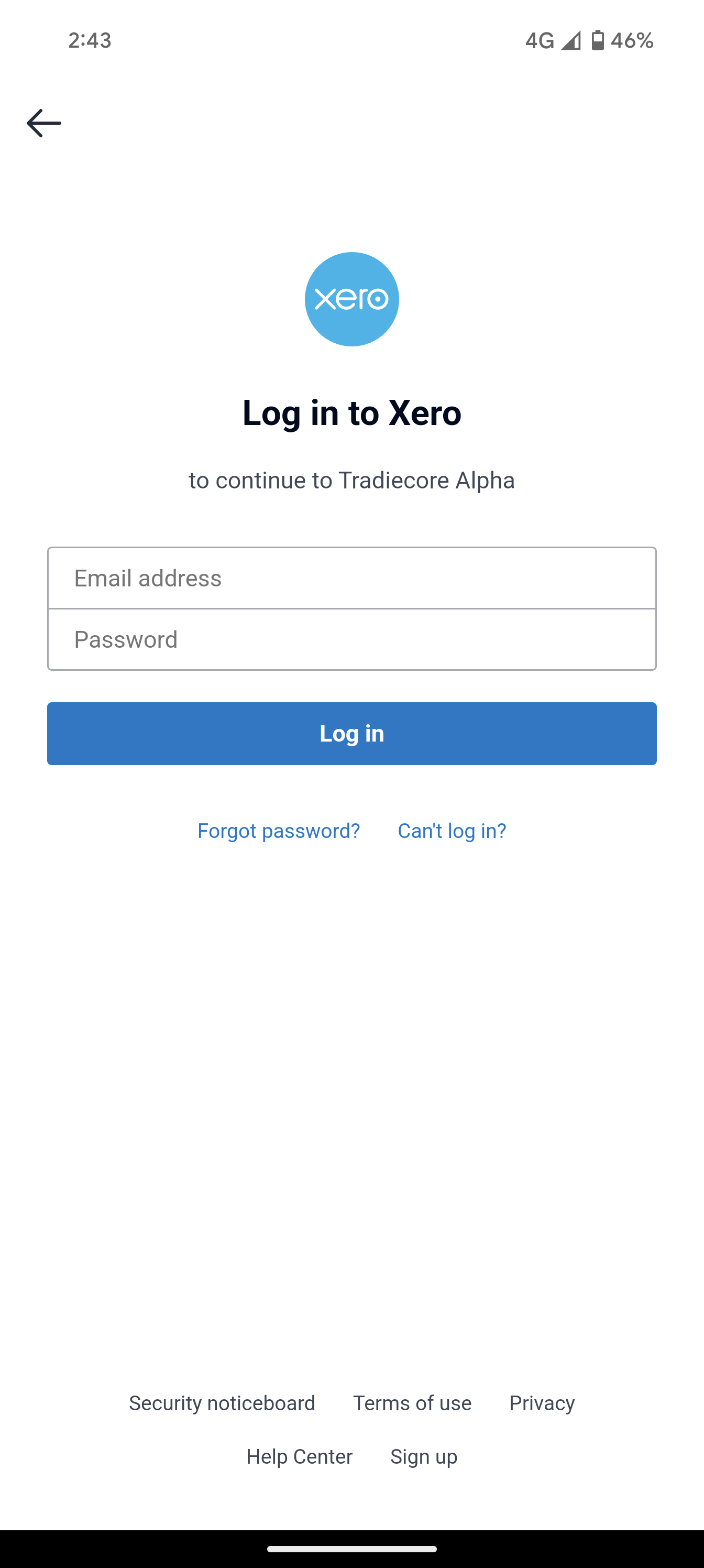 This will open the Xero login screen.