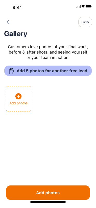 Upload a profile photo, add job photos, and complete a few key steps. Every time you hit a milestone, you’ll earn a free lead.