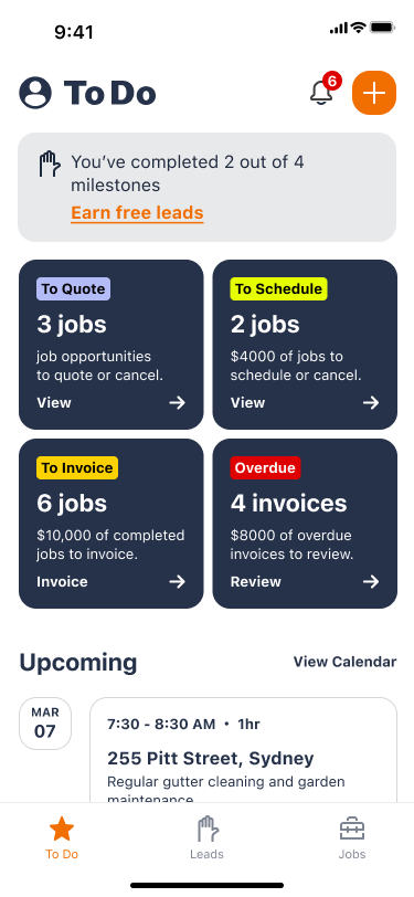 When you first log in to hipages tradiecore, you’ll go through a short welcome process along with several milestones. It’s designed to help you set up your profile, learn the basics, and start using the app with confidence.
