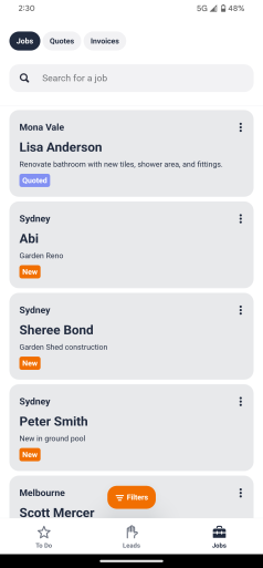 Jobs is where all your admin comes together with quoting, invoicing, scheduling, and more all in one place.