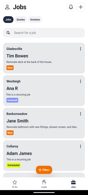 for a job from the Jobs list, or any of the jobs listed under each tile on the To Do screen.