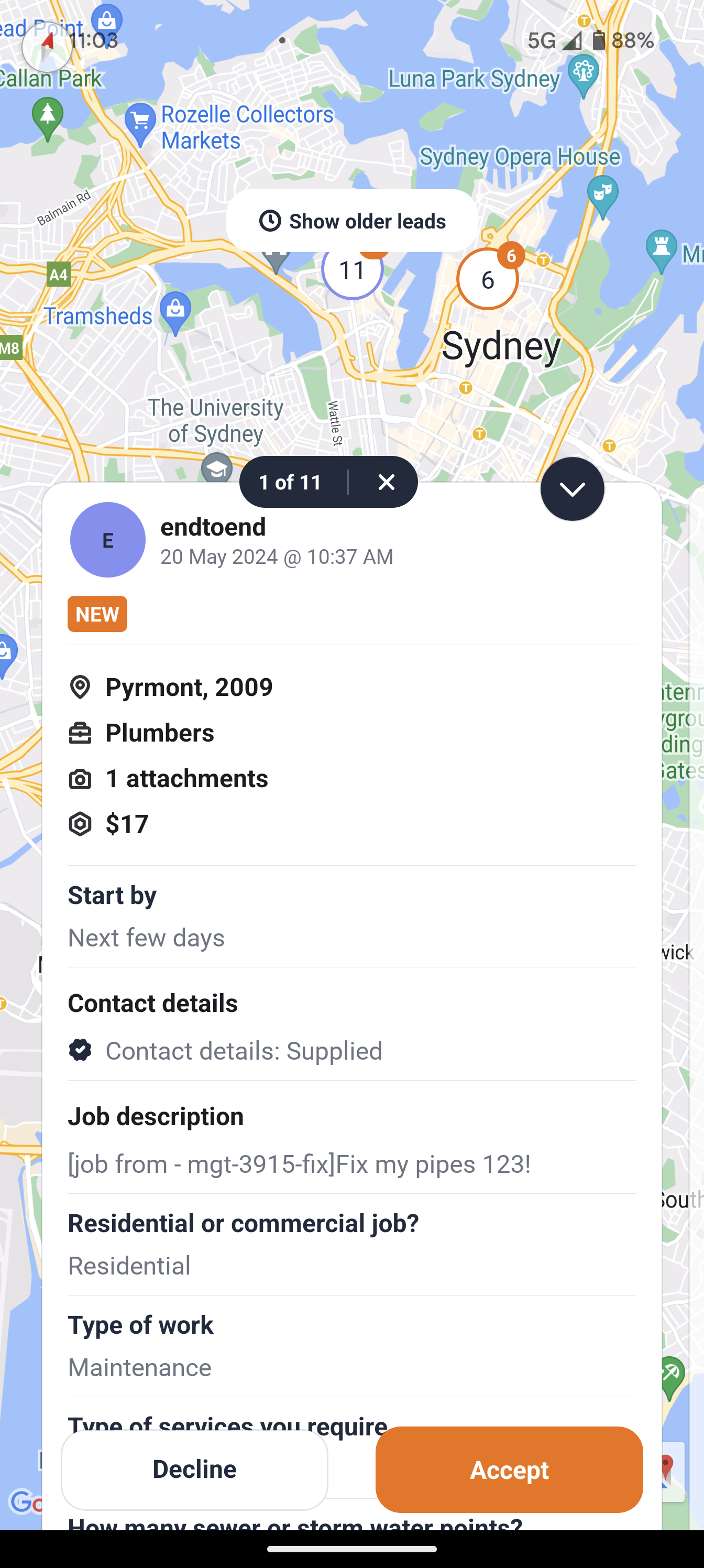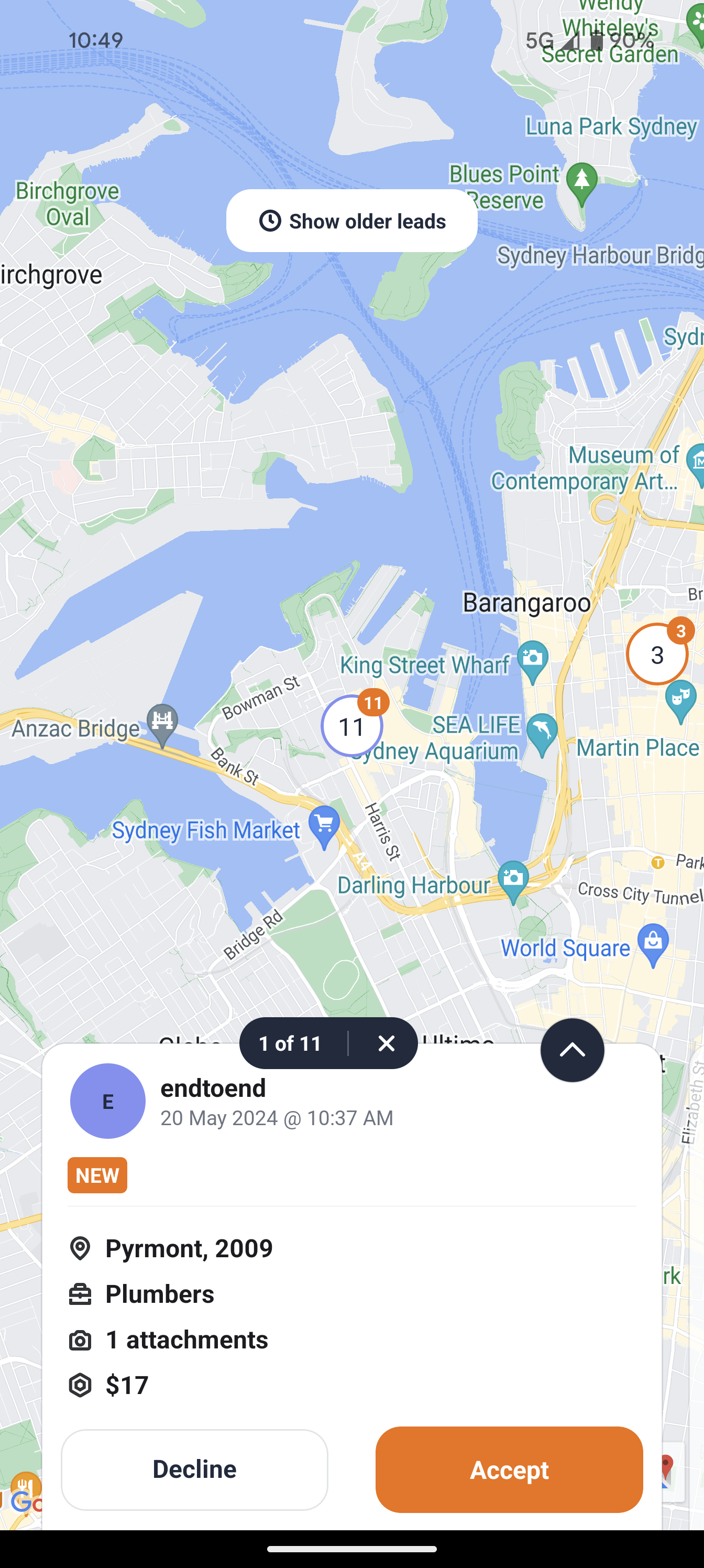 The map view for leads shows you all your new and older leads on a map based on the location of your business. The leads displayed on the map view are dependant on the areas that you have specified in Lead Settings.