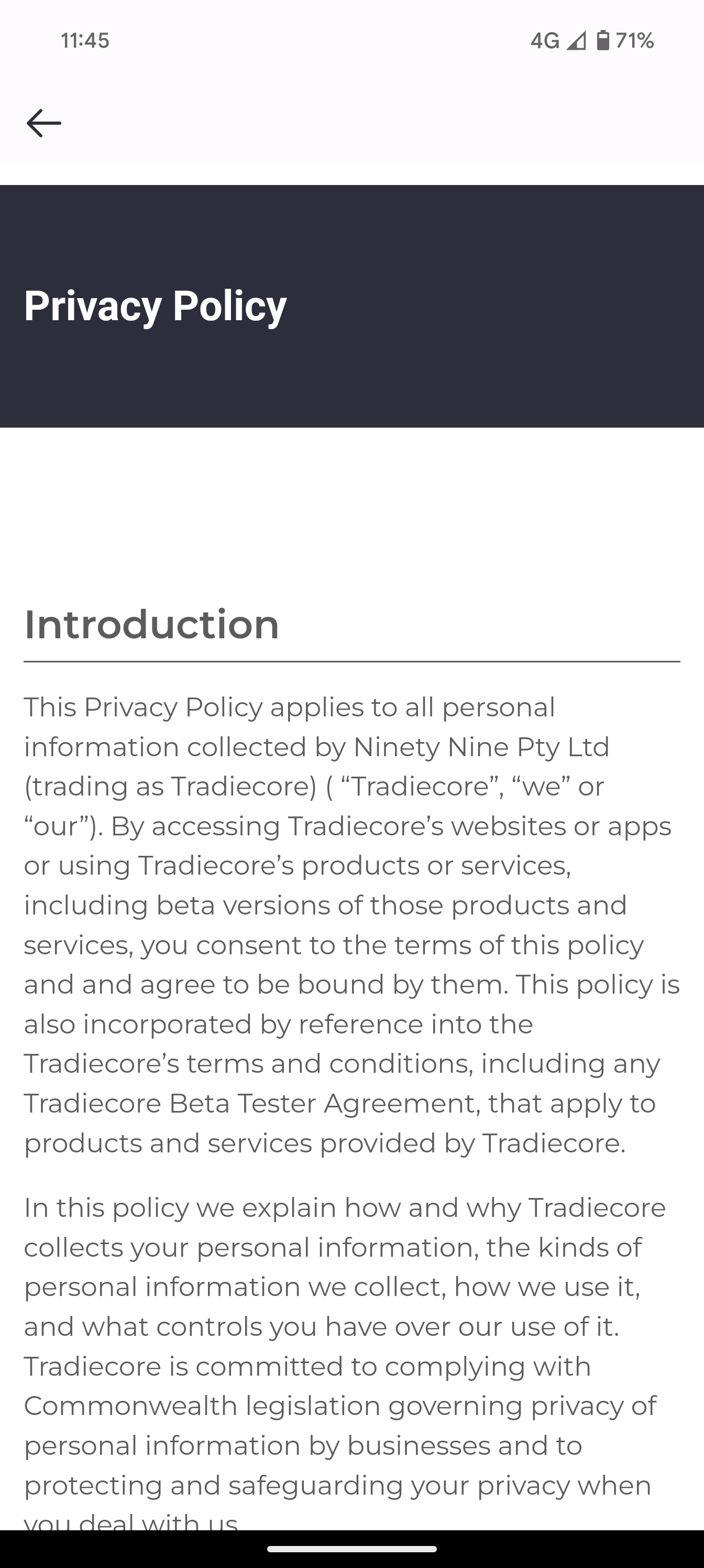 Read the hipages tradiecore Privacy Policy