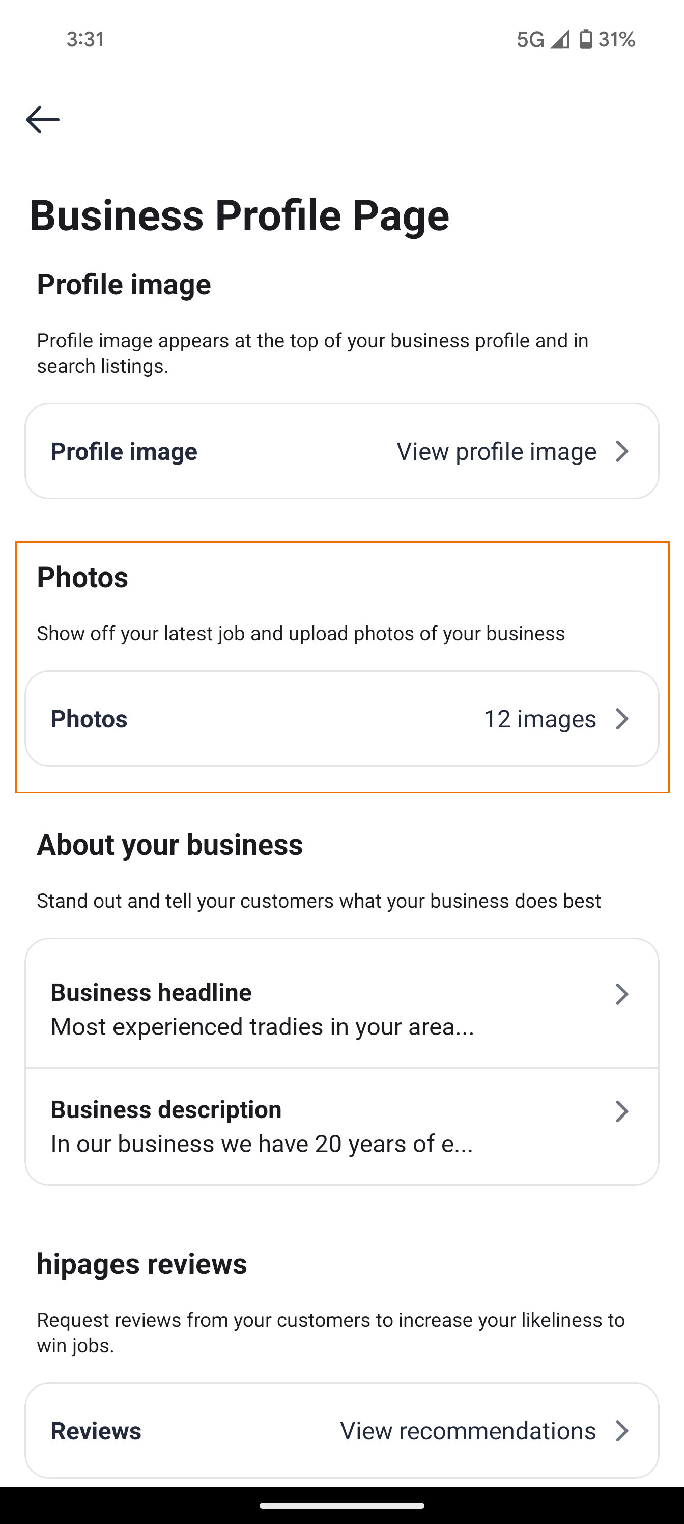 The profile photos section lets you exhibit jobs that you have completed successfully by adding photos.
