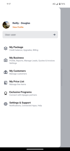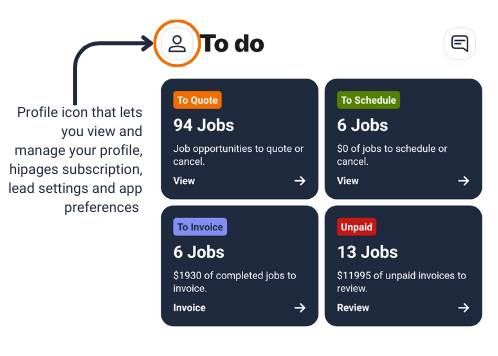 in the top-left corner of most screens in hipages tradiecore.